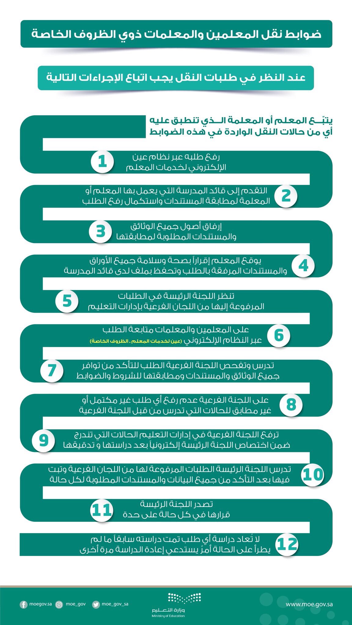 محمد الزارع בטוויטר مختصر ضوابط و حالات النقل للظروف الخاصة لشاغلي الوظائف التعليمية للعام الدراسي 1439 1440 هـ الظروف الخاصة