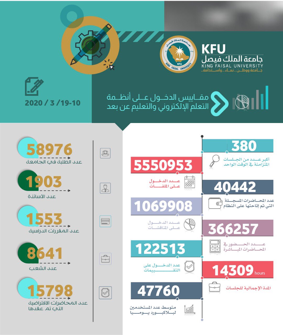 جامعة الملك فيصل On Twitter مقاييس الدخول على أنظمة التعلم الإلكتروني والتعليم عن بعد في جامعة الملك فيصل 10 19 3 2020