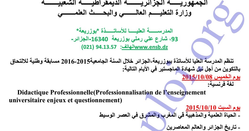 إعلان مسابقة ماجستير بالمدرسة العليا للأساتذة ببوزريعة الجزائر للموسم 2015 2016 مدونة التوظيف في الجزائر Dzemploi