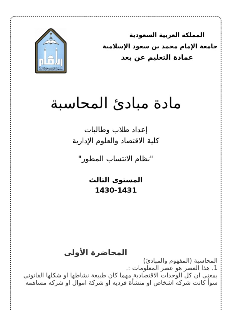 مبادئ المحاسبة 101 جامعة الملك عبدالعزيز انتساب